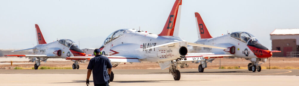 T-45s on the flightline at Naval Air Facility (NAF) El Centro in California. USN